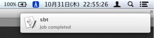 忘れるのでメモ。 GitBucketの作業をしている時にwarファイル作るのにantを叩くのだけど、時間がかかるので終わった時に通知したいと思っていた時にできるって記事をみたので助かった。 参考 http://blog.msyk.net/?p=181 http://qiita.com/kazuph/items/3bf…